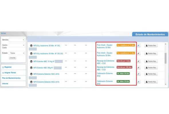 Diariamente se generan informes automáticos que no solo contienen la información sobre el estado actual de cada equipo, sino que también incluyen datos sobre las fechas de vencimiento próximas y cualquier intervención que se haya llevado a cabo. Estos informes se envían por correo electrónico a todas las partes relevantes, incluyendo a Valseg y a su contratista, asegurando así una comunicación fluida y transparente entre todas las partes involucradas.